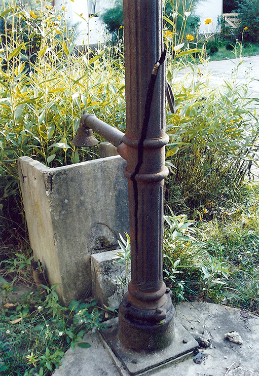 viszontagságától, hőtől-fagytól pusztuló közkút vasszerkezetének maradványai bújnak meg.